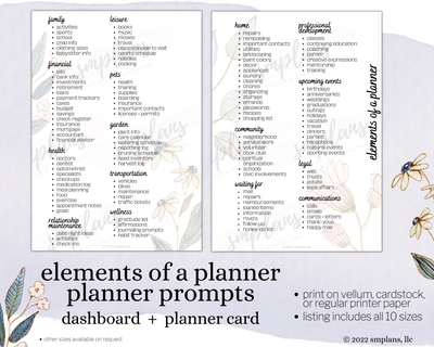 Elements of a Planner - Planner Prompts Digital Dashboard 10 sizes included!