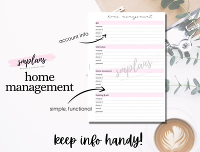 Home Management - Home Binder - Important Contact Info - Home Organization - Apartment