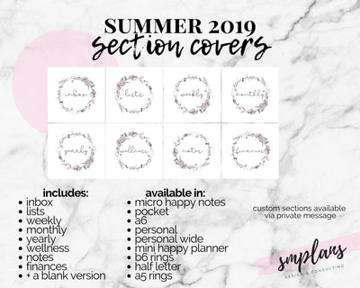 • Includes the following covers: Yearly, Monthly, Weekly, Lists, Inbox, Notes, Finances, Wellness, + a Blank one to be used for any section.