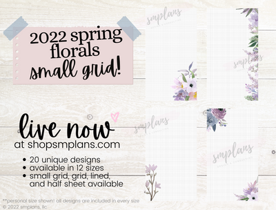 2022 Spring Florals are also available in grid, lined, small grid, and half sheets. The entire collection is available here!