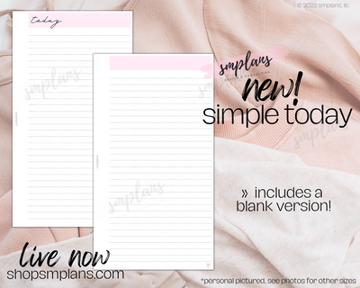 Features 16 pages with half of the pages featuring the 'today' header and the other half a blank header! Formatted to print front to back. Smaller sizes print two per page, larger (B6, A5, A5 Wide) print one per page.